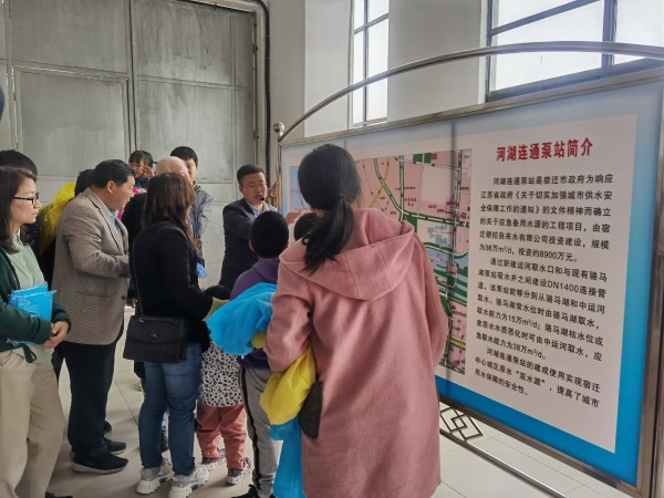 水是生命之源,彌足珍貴,節(jié)約用水是人類永恒的主題。今年5月11日—16日是我國第30個“城市節(jié)約用水宣傳周”,今年的主題是“貫徹新發(fā)展理念,建設(shè)節(jié)水型城市”。為大力宣揚節(jié)水理念,增強市民節(jié)水意識,5月15日,江蘇聯(lián)合水務(wù)科技股份有限公司宿遷公司與市住房和城鄉(xiāng)建設(shè)局、宿遷日報社共同舉辦了“一滴水的旅程”水廠開放日直播活動。參加活動的有熱心的市民代表、學(xué)生代表,還有市綠色環(huán)保協(xié)會的志愿者們,共計40余人。小雨紛飛,依然沒能阻擋大家探秘自來水的高漲熱情。上午8:30,從宿遷日報社集中乘車出發(fā),大家一路歡聲笑語,直奔第一站——駱馬湖飲用水源地。途中,市住房和城鄉(xiāng)建設(shè)局供排水中心朱泉主任為大家分享了一些節(jié)水小知識,孩子們踴躍提問,增長了節(jié)水知識和認識。到達駱馬湖水源地,望向浩瀚飄渺的駱馬湖,煙霧縈繞,一望無際,大家紛紛表示駱馬湖是宿遷人的母親湖,保護水源,就是保護城市命脈。在河湖連通原水泵站,大家參觀了送水泵房,聽取了該泵站的詳細介紹。