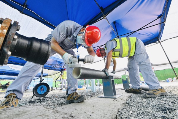 夏季高溫,管道故障多發(fā)、維修任務(wù)重,遇到緊急搶修,便是一場(chǎng)與時(shí)間較量的硬仗,真實(shí)的作業(yè)環(huán)境要比模擬賽場(chǎng)復(fù)雜嚴(yán)峻得多。賽后,參賽選手陳國(guó)興提及本次比賽時(shí)坦言,盡管在工作中已經(jīng)算得上是“身經(jīng)百戰(zhàn)”的老員工,但面對(duì)比賽還是會(huì)有些緊張,比賽中管材的選擇是否正確、管內(nèi)壁是否擦干凈、尺寸計(jì)算是否合理最終都會(huì)影響比賽結(jié)果。比賽不但考驗(yàn)選手的技術(shù),還考驗(yàn)選手的心理素質(zhì),比賽現(xiàn)場(chǎng)也會(huì)有一些臨時(shí)的突發(fā)情況,這就需要選手們靈活應(yīng)對(duì)。