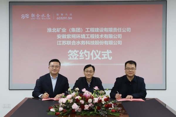 近日,聯(lián)合水務與淮北礦業(yè)(集團)工程建設有限責任公司(以下簡稱“淮北礦建”)、安徽紫朔環(huán)境工程技術有限公司(以下簡稱“安徽紫朔環(huán)境公司”)舉行戰(zhàn)略合作簽約儀式,共同開啟水務領域合作發(fā)展新篇章。