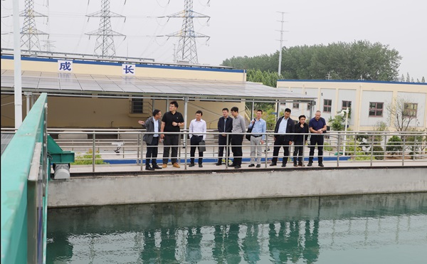 代表團(tuán)現(xiàn)場參觀了公司二水廠五期工程建設(shè)現(xiàn)場,詳細(xì)了解了工程建設(shè)的重要意義,以及水廠建設(shè)、運(yùn)行維護(hù)等方面的情況。在隨后的參觀過程中,雙方圍繞供水安全、漏損控制、水處理工藝、出水水質(zhì)等情況進(jìn)行探討交流。在調(diào)度中心,聯(lián)合水務(wù)宿遷公司副總經(jīng)理趙軍向代表團(tuán)介紹了公司智慧水務(wù)建設(shè)情況,并通過大屏動態(tài)演示,直觀展示公司實時動態(tài)監(jiān)測、GIS系統(tǒng)運(yùn)用、DMA分區(qū)計量等智慧水務(wù)應(yīng)用成果,代表團(tuán)對公司在水務(wù)領(lǐng)域取得的卓越成就給予高度評價。