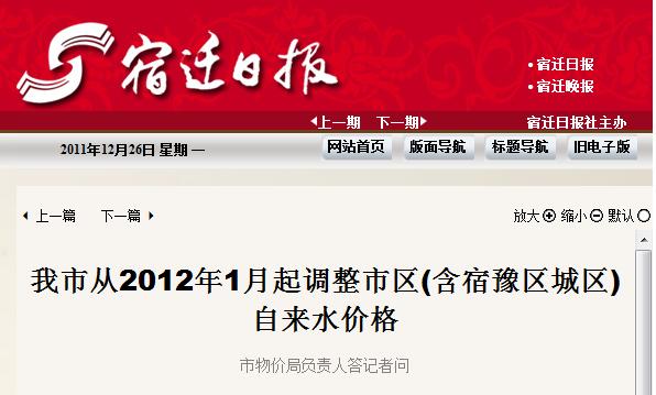 我市從2012年1月起調(diào)整市區(qū)(含宿豫區(qū)城區(qū))自來水價格