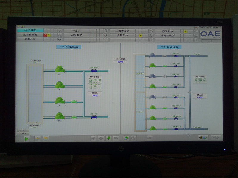 目前,系統(tǒng)已經(jīng)全部完成,所有泵站運(yùn)行數(shù)據(jù)和水質(zhì)監(jiān)測點水質(zhì)數(shù)據(jù)和三個新建增壓泵站視頻監(jiān)控都已經(jīng)上傳至二水廠調(diào)度中心。這一系統(tǒng)的建成不僅完善了宿遷公司調(diào)度中心的供水調(diào)度系統(tǒng),實現(xiàn)了對各泵站實現(xiàn)了實時監(jiān)控,保證了各泵站的安全運(yùn)行,還對管網(wǎng)的的水質(zhì)做到了實時監(jiān)測,保證了管網(wǎng)水質(zhì)的安全,為宿遷公司的安全供水工作又增添了一道保障。