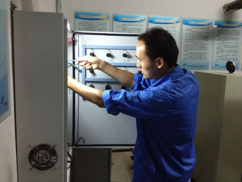 挑戰(zhàn)高溫酷暑的機電設備維護人員,確保每一臺機器設備的安全運轉。每年的高峰供水來臨前,宿遷銀控自來水有限公司都會制定詳實的電氣設備和機組設備的保養(yǎng)、維護、改造計劃,確保各項設備運行狀況良好,同時要求,在高峰供水期間,每日要對機組進行加密巡檢,特別是對易產生高溫運轉的設備如電器設備進行專項養(yǎng)護。這可忙壞了機電設備人員。在熱氣蒸騰的狹小機柜內、在機器轟鳴震耳欲聾、密不透風的機組運行間、在充滿窒息氣味的脫泥機間……在裝有設備的每一個角落,他們忍受著悶熱、刺鼻的焦味認真工作著。維修人員介紹說,每周要進行至少30余項電路養(yǎng)護、巡檢,平均每天都要在這樣的環(huán)境下工作數(shù)小時。他們說,機組的安全運行保障了制水的安全生產,擔負著為全城百姓供水服務的責任,雖苦猶榮。